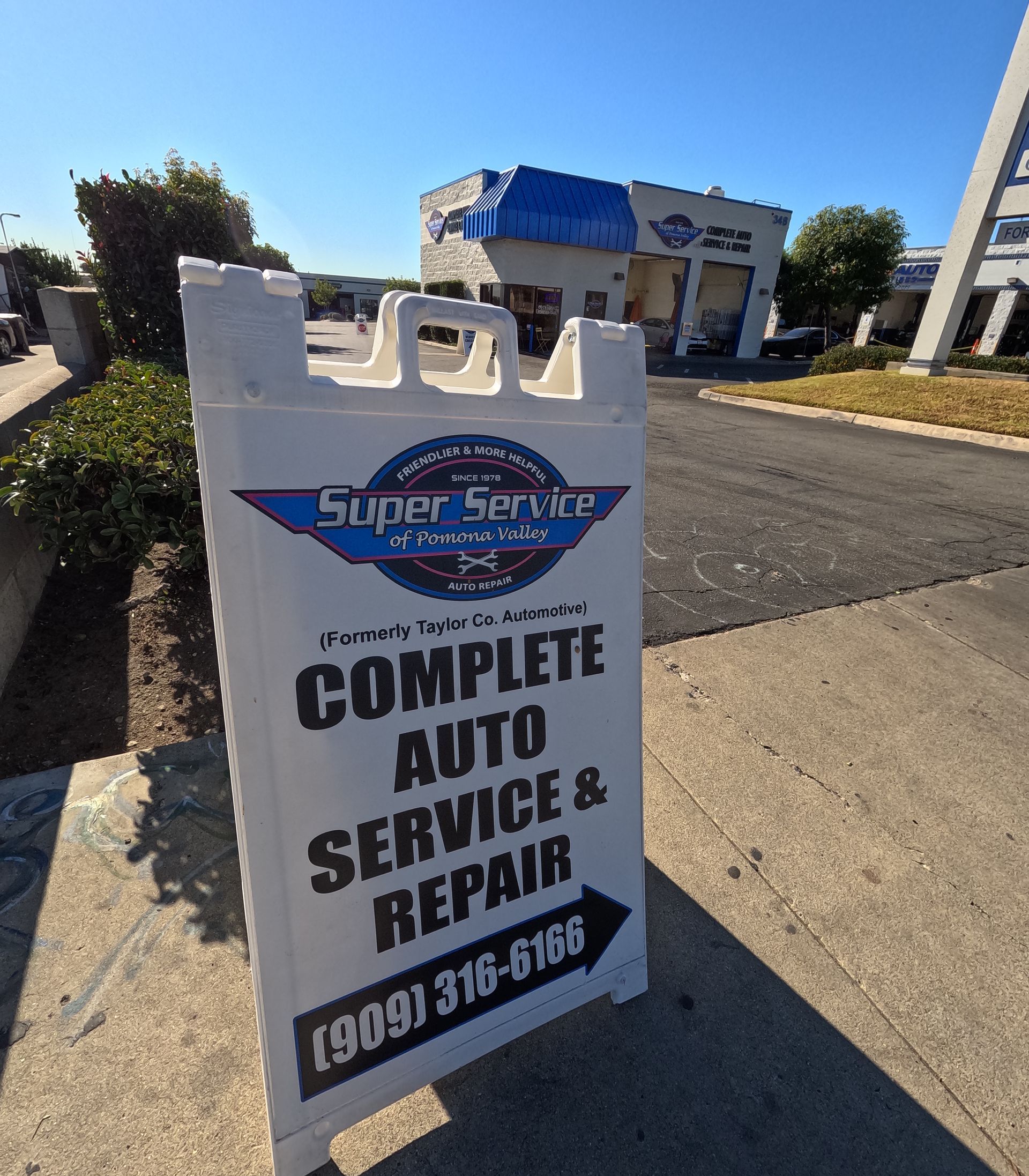 Welcome to Super Service of Pomona Valley, formerly Taylor Company Automotive! One thing you should know about us – we don’t just fix cars; we’re here to take care of the people who drive them, and to transform their entire auto repair experience. We live up to our Super Service name with friendly, impeccable service and honest, reliable repairs. At Super Service of Pomona Valley, we’re all about the little things that make a big difference like digital inspections, our concierge service which includes courtesy loaners, pickup & drop-off service, and a 3-year, 36,000-mile parts and labor nationwide warranty.